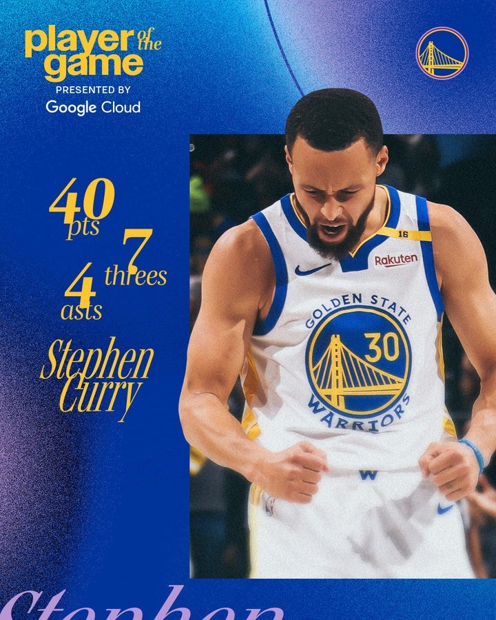 當(dāng)之無(wú)愧!勇士官方評(píng)選本場(chǎng)最佳 轟下40分的庫(kù)里當(dāng)選