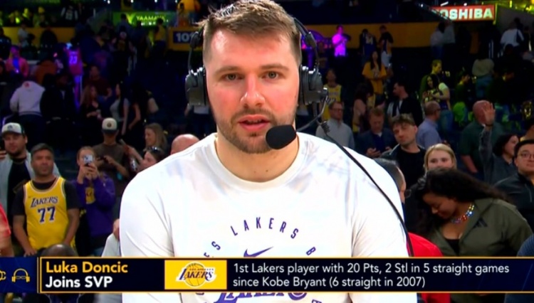 東契奇連續(xù)5場至少20分2斷 湖人隊史自2007年的科比后首人