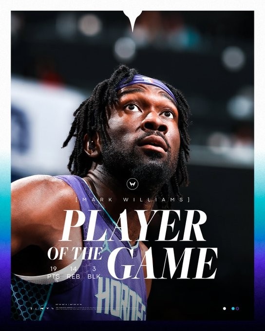 賽后,中鋒馬克-威廉姆斯被黃蜂官方評(píng)為本場(chǎng)比賽最佳球員。