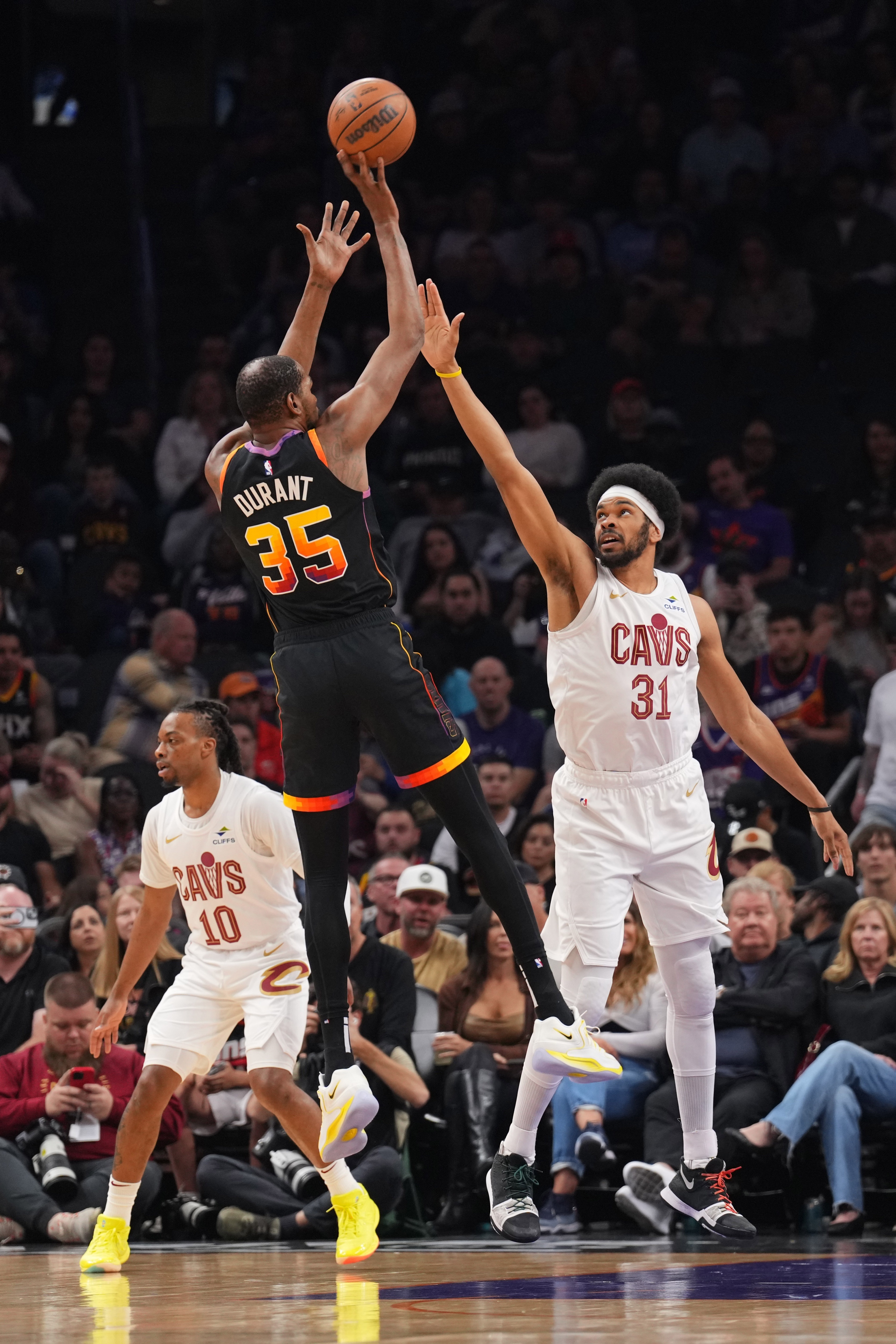 太陽下半場繼續(xù)點名軍訓(xùn)騎士的防守弱環(huán),杜蘭特?fù)醪瘘c名米切爾和斯特魯斯單打,無差別中距離單打騎士最好的防守者莫布里;布克也點名米切爾和加蘭,騎士單防壓力巨大,無奈采用了聯(lián)防,但被吉萊斯皮和鄧恩大空位三分射穿,太陽一度建立起20分領(lǐng)先優(yōu)勢。