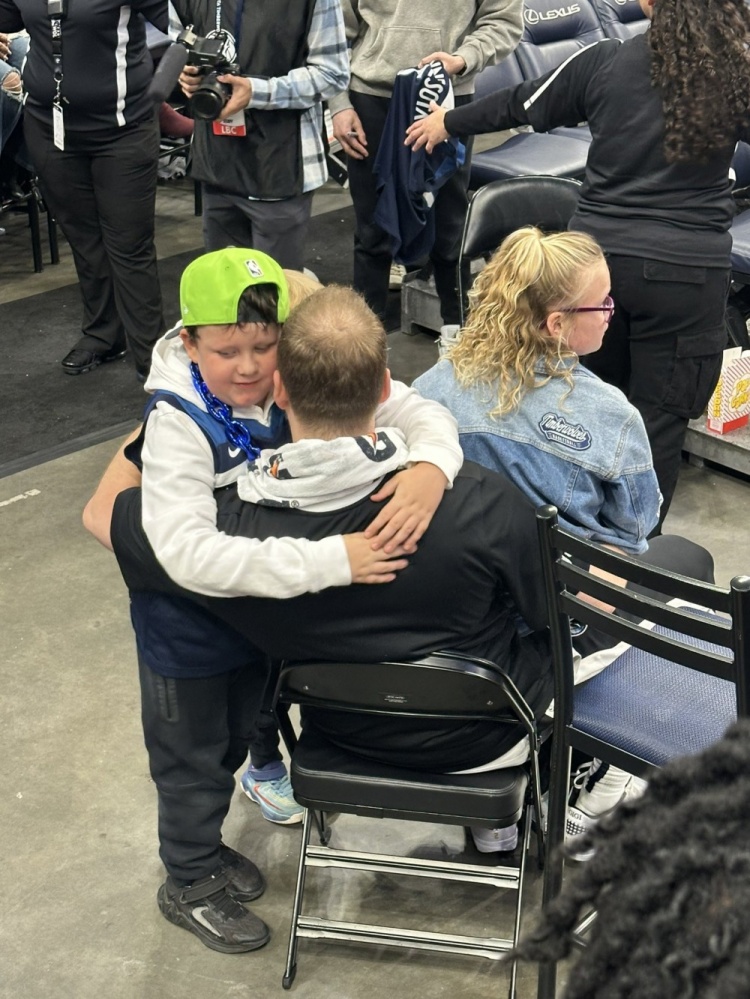 本場(chǎng)比賽,森林狼老將喬·英格爾斯12歲的自閉癥兒子雅各布,在家人的陪同下來到了現(xiàn)場(chǎng)觀看父親的比賽。森林狼主教練貼心地將英格爾斯安排進(jìn)了首發(fā),這也是自2021-22賽季,英格爾斯首次首發(fā),當(dāng)時(shí)他還在爵士隊(duì)。