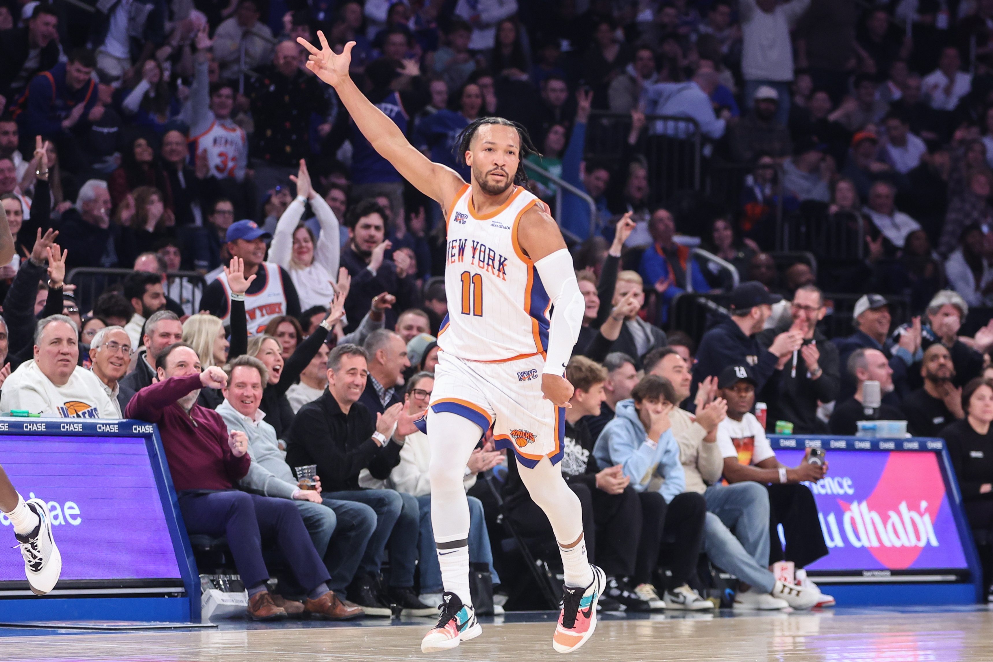 布倫森崴腳傷退無疑是比賽的轉(zhuǎn)折點(diǎn),唐斯面對(duì)湖人小個(gè)糾纏無法背身要球,尼克斯只能指望麥克布萊德干拔強(qiáng)投賭一錘子買賣,海斯和老詹接連造殺傷有驚無險(xiǎn)收下了比賽。