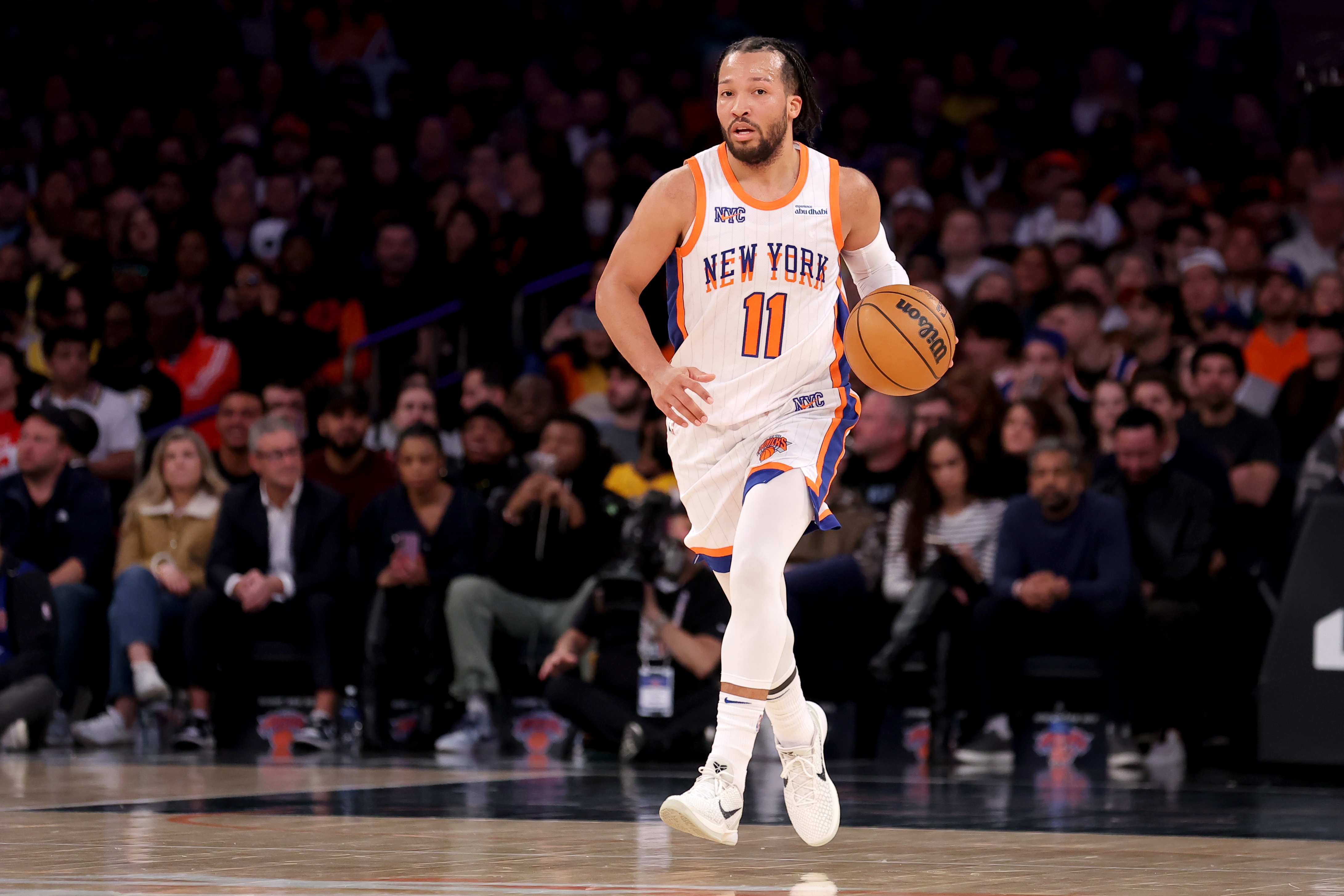 布倫森本場出戰(zhàn)41分11秒,砍下39分4籃板10助攻。加時賽還剩1分24秒時,他反擊上籃腳踝受傷,完成兩次罰球后返回了更衣室。