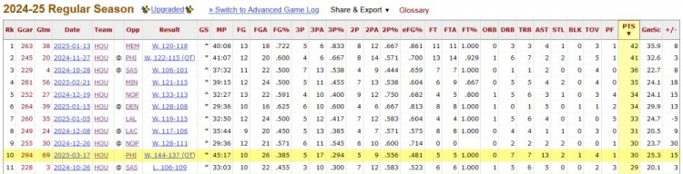 至此,杰倫-格林本賽季砍30+火箭全勝的紀(jì)錄告破,戰(zhàn)績來到10勝1負(fù)。