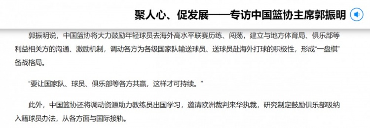 3月25日訊 籃協(xié)主席郭振明近日接受了新華社的專訪,談到了多個話題。其中一點,他表示中國籃協(xié)將大力鼓勵年輕球員去海外高水平聯(lián)賽歷練、闖蕩。