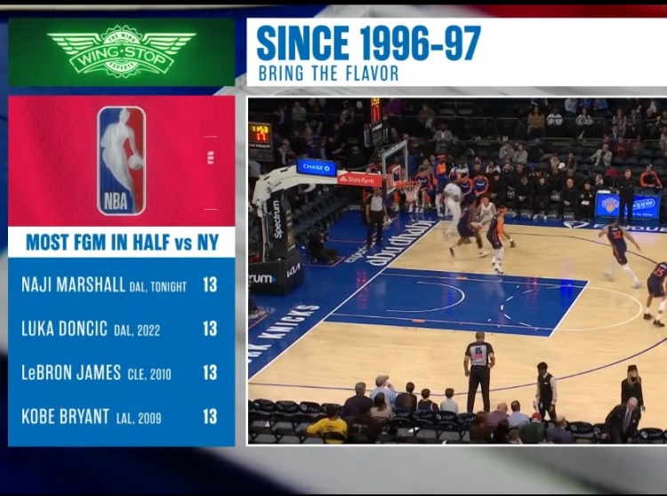 據(jù)統(tǒng)計(jì),自1996-97賽季(有統(tǒng)計(jì))以來(lái),馬紹爾在對(duì)陣尼克斯的半場(chǎng)進(jìn)了13球,追平了科比、詹姆斯和東契奇,并列第一。