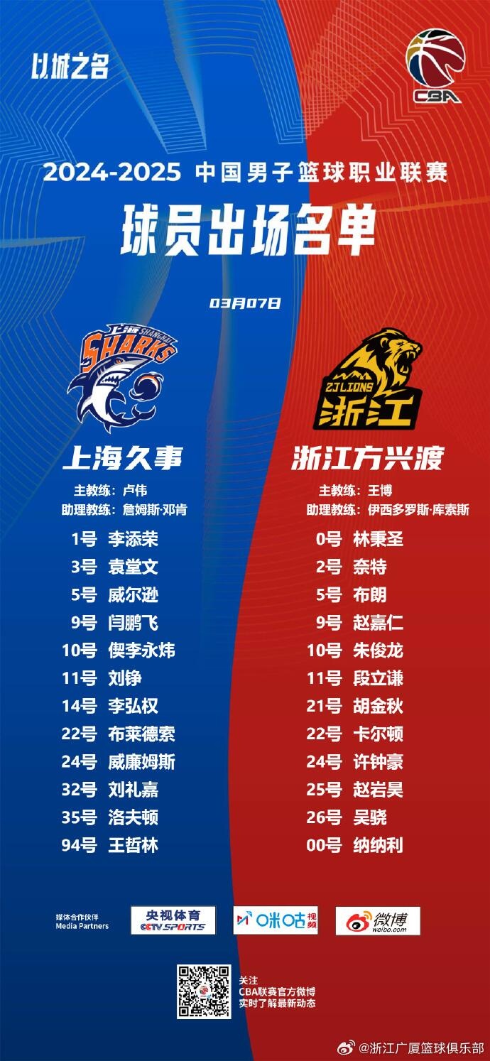 本場比賽的大名單已經(jīng)出爐,王哲林、胡金秋、朱俊龍領(lǐng)銜。以下為具體的名單: