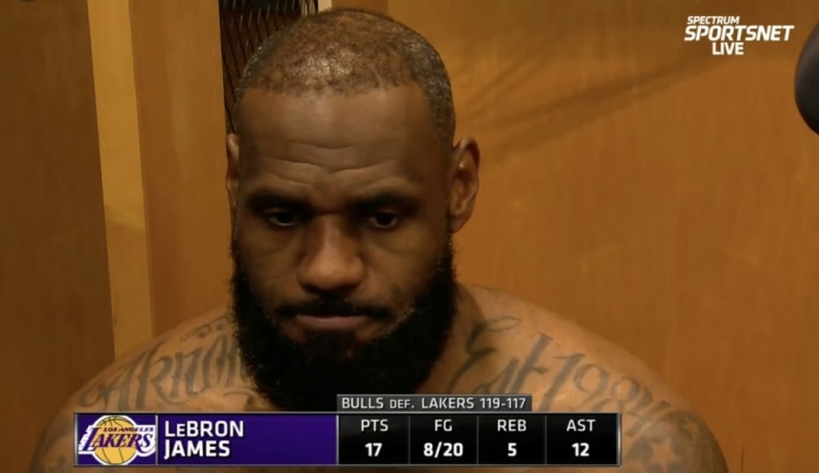 3月28日訊 今日,湖人117-119客場(chǎng)不敵公牛。賽后,湖人前鋒詹姆斯接受了采訪(fǎng)。