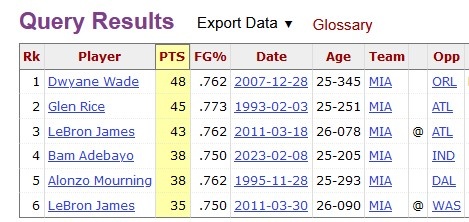 希羅成熱火隊(duì)史單場(chǎng)砍至少35分且命中率75%+最年輕球員 力壓詹韋