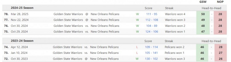 至此,勇士本賽季和鵜鶘的常規(guī)賽交手全部結(jié)束,勇士4-0完成橫掃。