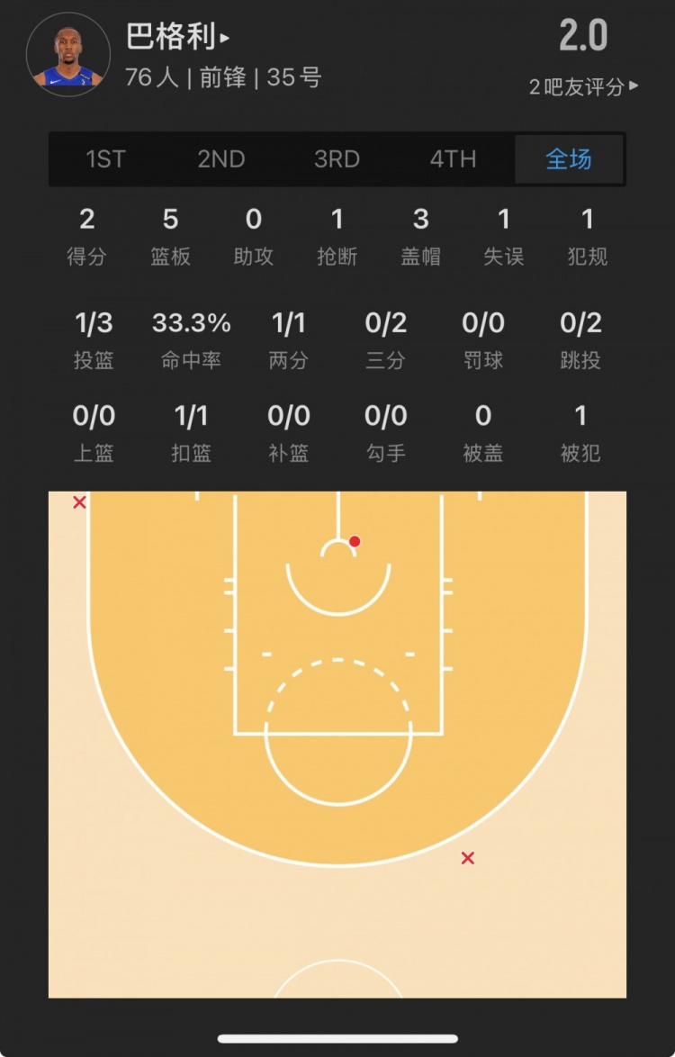 76人落選秀 馬庫斯-巴格利 登場(chǎng)18.3分鐘