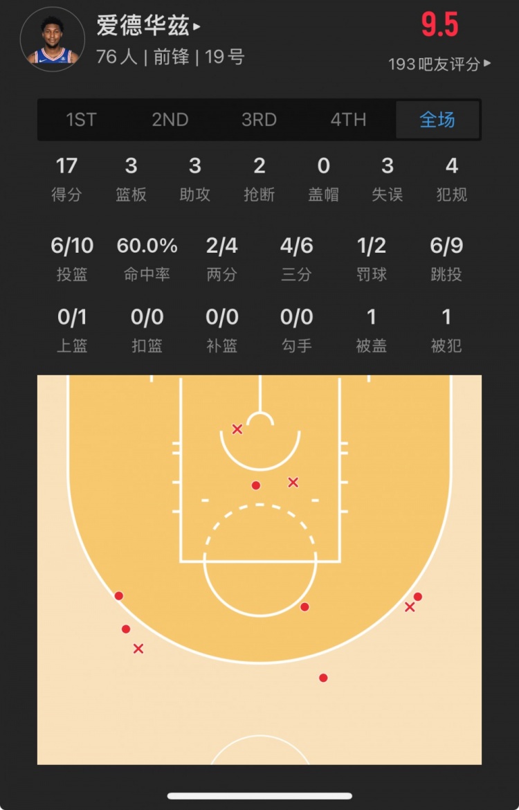 76人落選秀 賈斯汀-愛德華茲 登場(chǎng)35.5分鐘