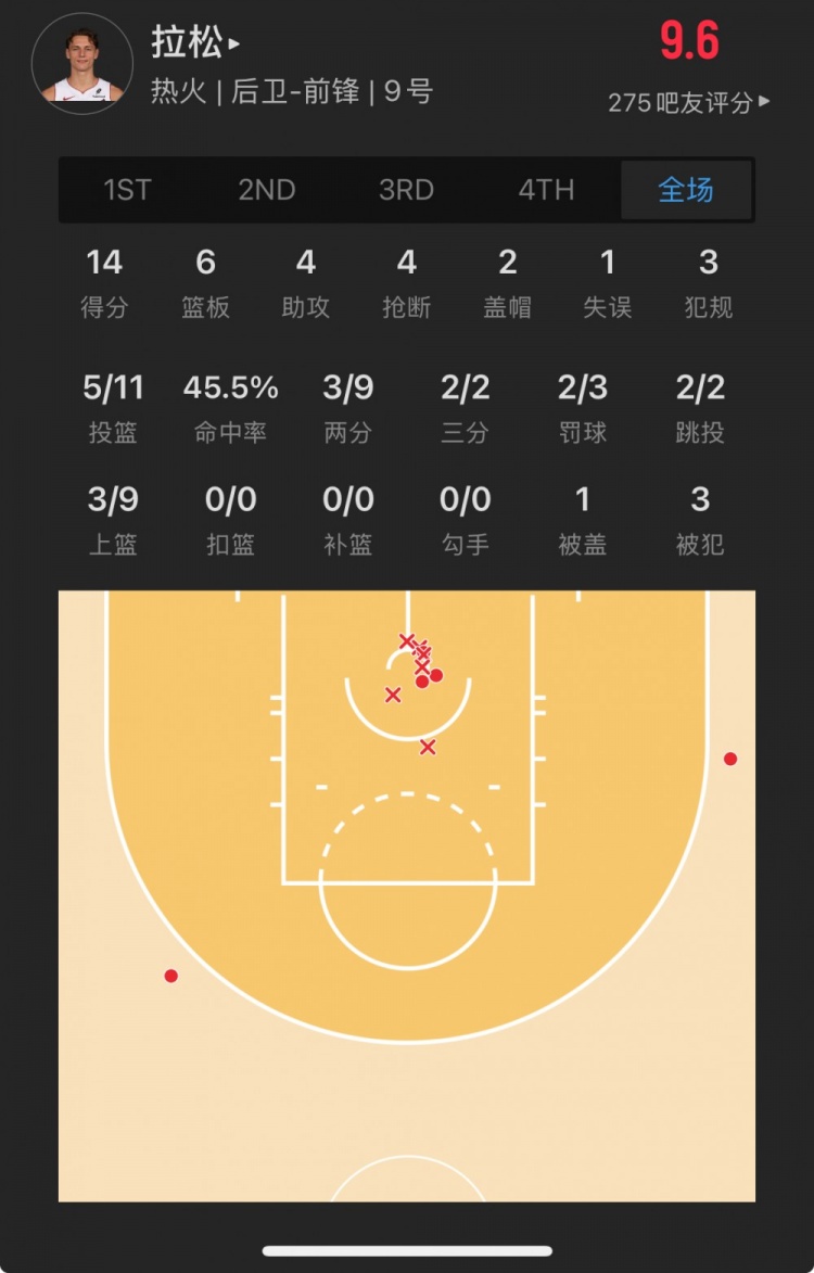 熱火44號(hào)秀 佩勒-拉松 登場(chǎng)30.0分鐘