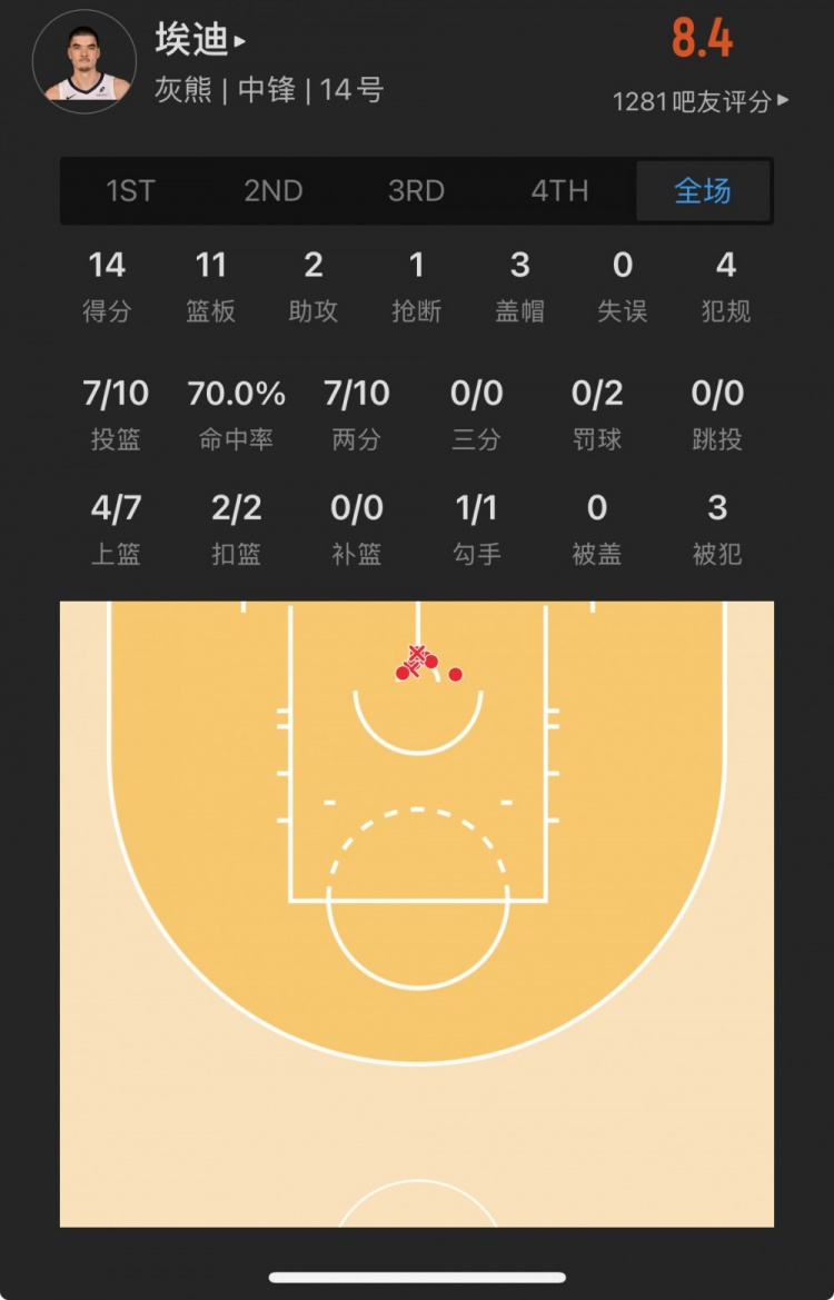 灰熊9號(hào)秀 扎克-埃迪 登場(chǎng)26.5分鐘