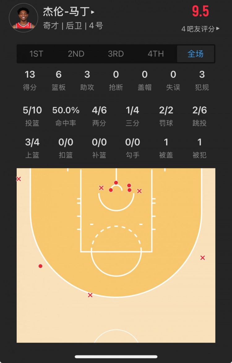 奇才落選秀 杰倫-馬丁 登場(chǎng)30.4分鐘