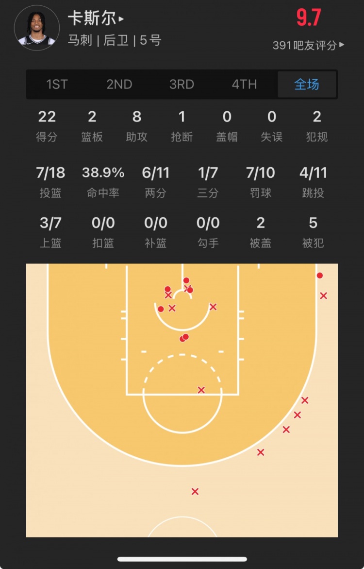 馬刺4號(hào)秀 斯蒂芬-卡斯?fàn)?登場(chǎng)29.5分鐘