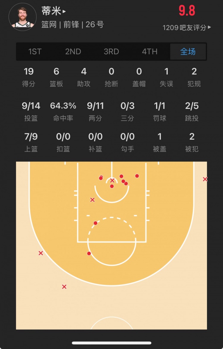 蒂米強(qiáng)攻上籃造成干擾球完成關(guān)鍵反超