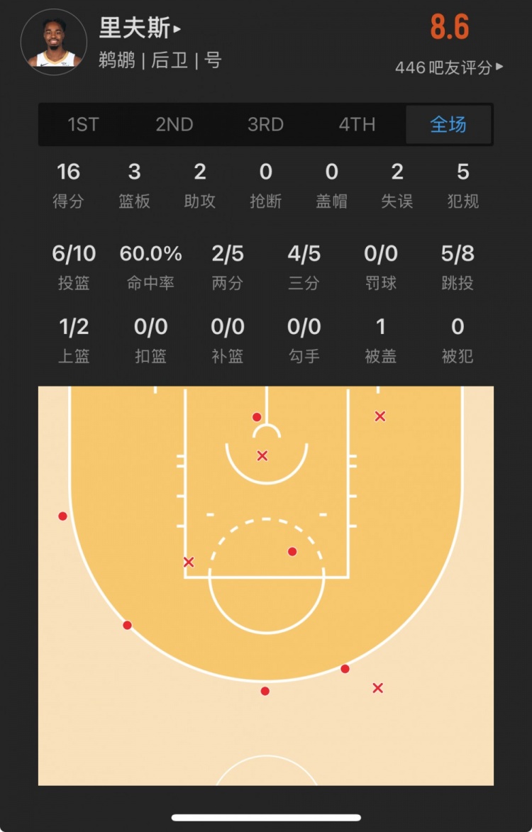 76人落選秀 亞歷克斯-里斯 登場21.1分鐘