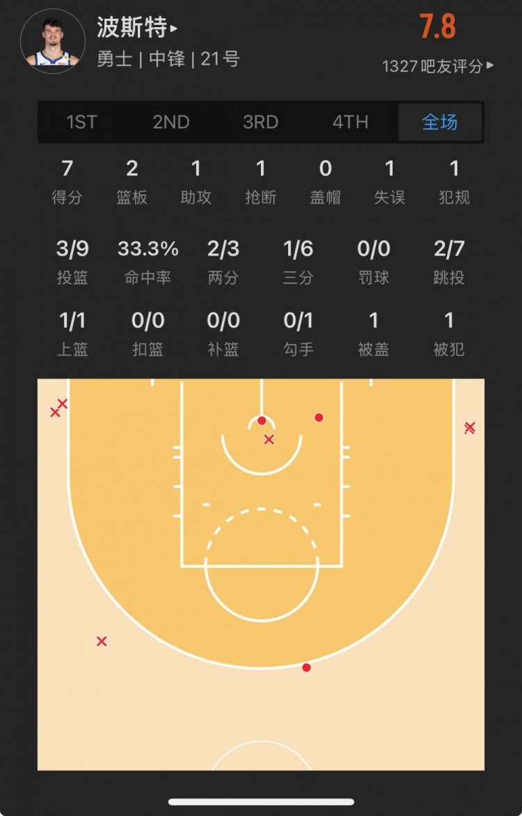 勇士52號秀 昆滕-波斯特 登場17.7分鐘