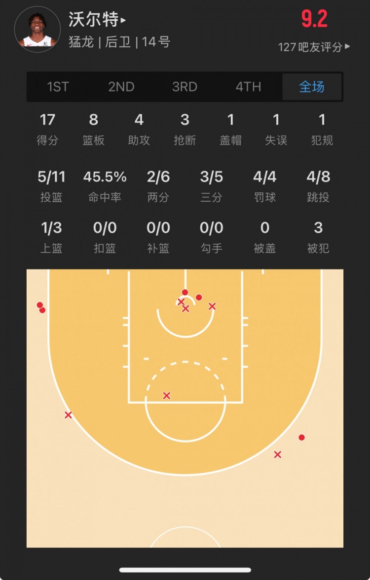 猛龍19號秀 賈科比-沃爾特 登場34.2分鐘