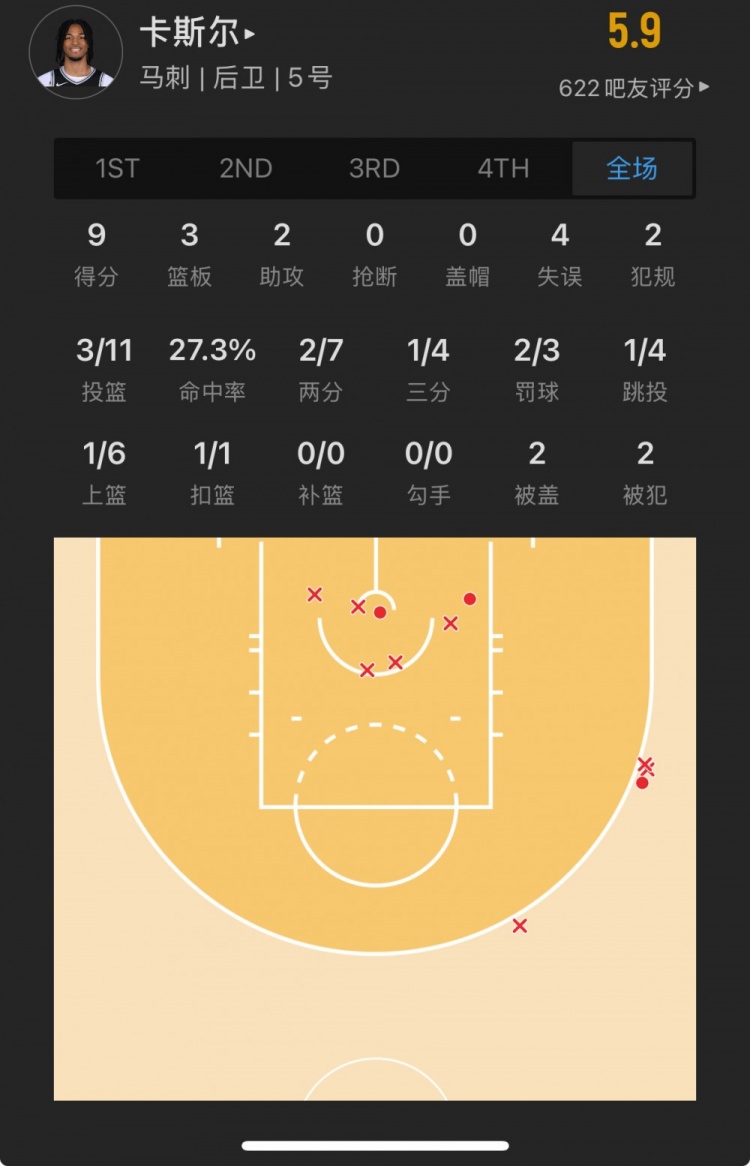 馬刺4號秀 斯蒂芬-卡斯爾 登場22.5分鐘