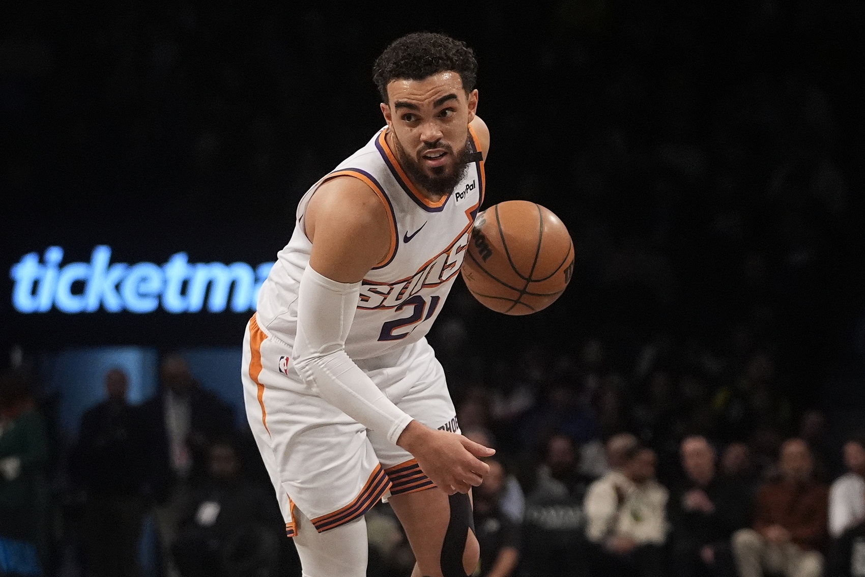 上半場(chǎng),太陽(yáng)球員泰厄斯-瓊斯表現(xiàn)不佳,進(jìn)攻端毫無(wú)手感,好在是串聯(lián)還可以,在7分鐘的時(shí)間里,投籃4中0,三分球1中0,拿到3助攻1搶斷的數(shù)據(jù)。