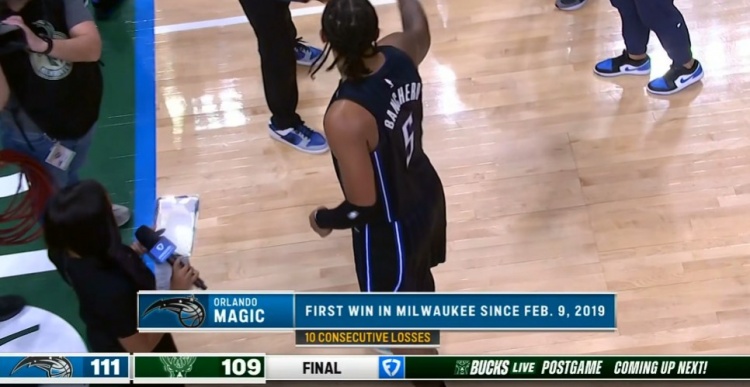 此役取勝之后,魔術(shù)結(jié)束了對(duì)雄鹿的客場(chǎng)10連敗,他們上一場(chǎng)客勝雄鹿是2019年2月9日。