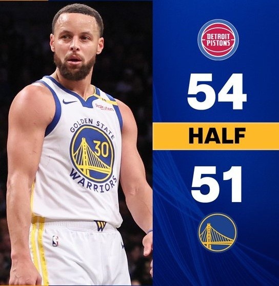 3月9日訊 NBA常規(guī)賽今天繼續(xù)進(jìn)行,勇士在主場迎戰(zhàn)活塞。半場結(jié)束時,勇士51比54落后。