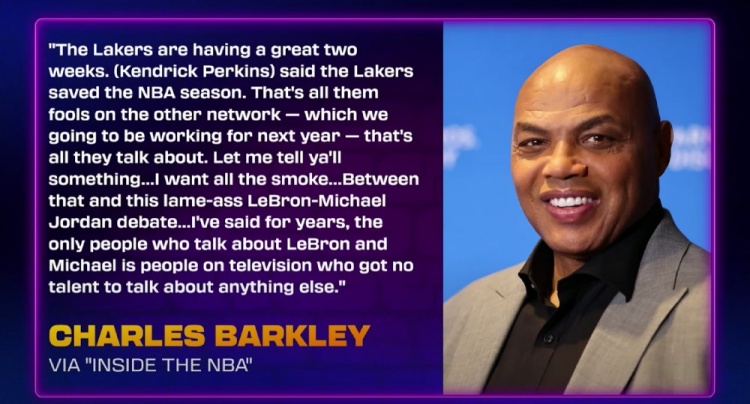 他說(shuō):“湖人隊(duì)在過(guò)去兩周的表現(xiàn)非常出色,而帕金斯說(shuō)湖人隊(duì)拯救了NBA賽季。另一家媒體(ESPN)的那些蠢貨——我們明年就要為他們工作了,他們整天就聊這些。我跟你們說(shuō),我可不怕?tīng)?zhēng)議。除了這個(gè),還有勒布朗和邁克爾-喬丹誰(shuí)更厲害這種無(wú)聊的爭(zhēng)論。我都說(shuō)了好幾年了,只有那些在電視上沒(méi)別的話(huà)題可聊的人才會(huì)談?wù)摾詹祭屎瓦~克爾 ?!?/p>