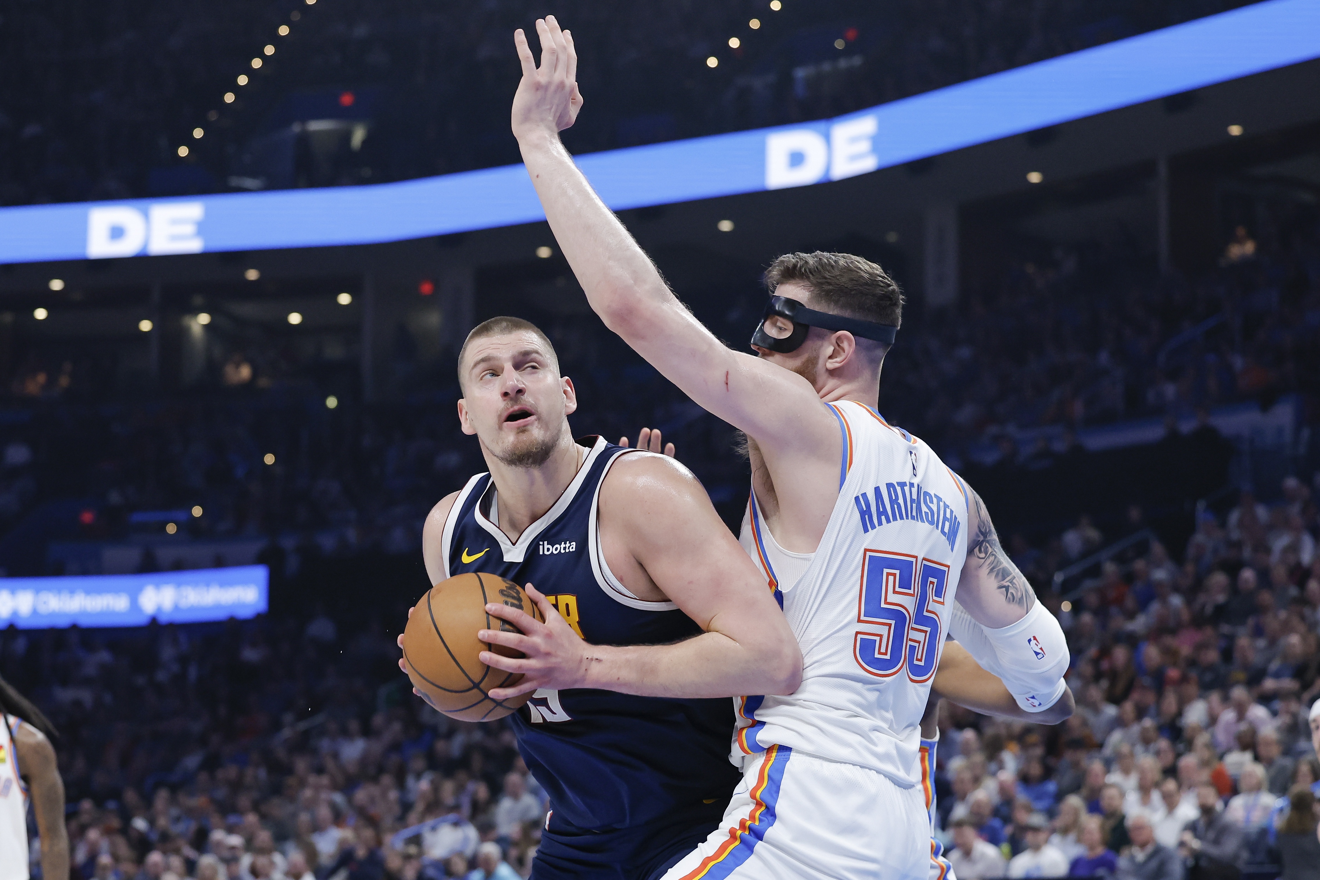 雷霆防守的底層邏輯是哈爾滕施泰因當(dāng)肉盾正面扛約老師,其他人幫忙夾擊輪轉(zhuǎn),首發(fā)陣容優(yōu)先放空威少、替補(bǔ)陣容優(yōu)先放空沃特森。戴格諾特教練允許掘金的半射手在三分線外抽獎,局部2-3協(xié)防不讓約老師舒服地單打強(qiáng)吃——雷霆防守效率聯(lián)盟第一,小個球員能把輪轉(zhuǎn)速率和防守伸縮性拉滿,這是他們制衡約老師的根本底氣。