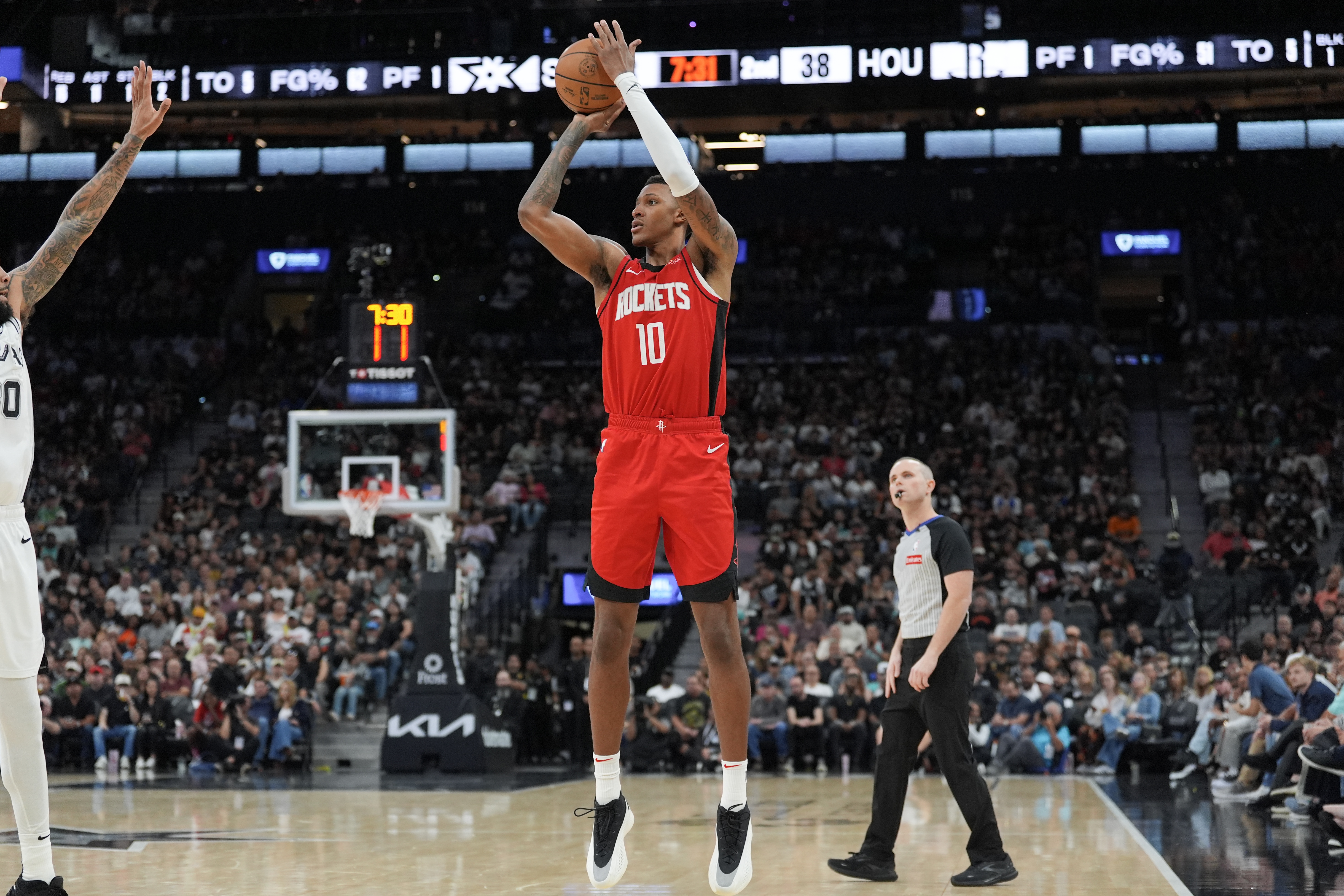 此役火箭前鋒小賈巴里-史密斯外線手感不錯(cuò),打了32分鐘13投5中,三分10中5、罰球7中5拿到全隊(duì)最高20分外加7籃板1蓋帽。