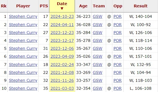 本場(chǎng)過(guò)后,庫(kù)里目前對(duì)開拓者10連勝,他上次輸給開拓者還是1469天前。