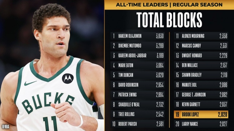 大洛佩斯生涯蓋帽達(dá)到2028個(gè)獨(dú)占?xì)v史第19 下一步將追逐加內(nèi)特!