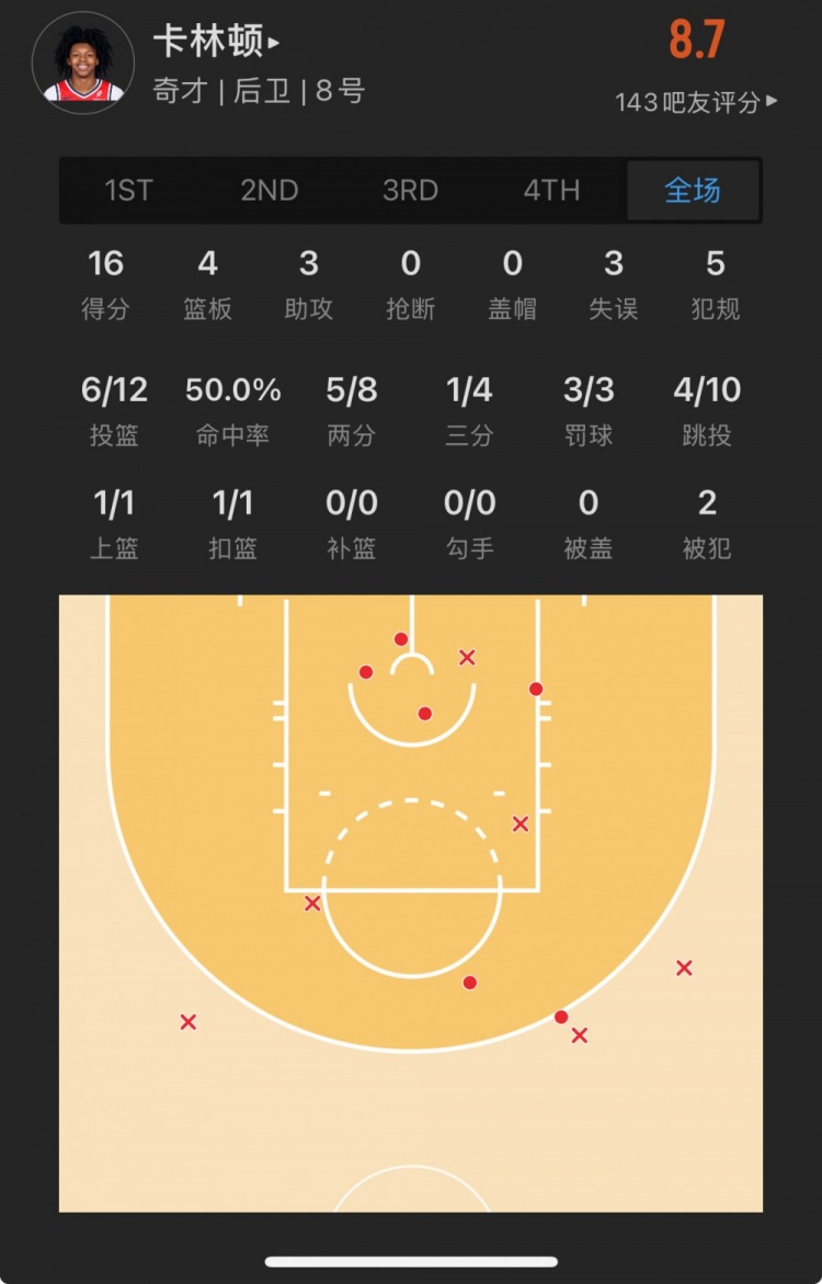 奇才14號(hào)秀 卡爾頓-卡林頓 登場(chǎng)27.3分鐘