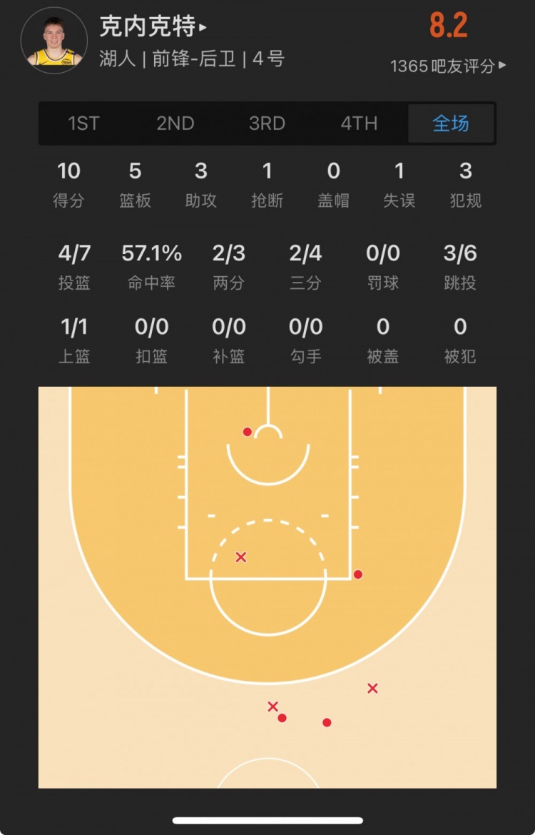 湖人17號(hào)秀 道爾頓-克內(nèi)克特 登場(chǎng)21.9分鐘