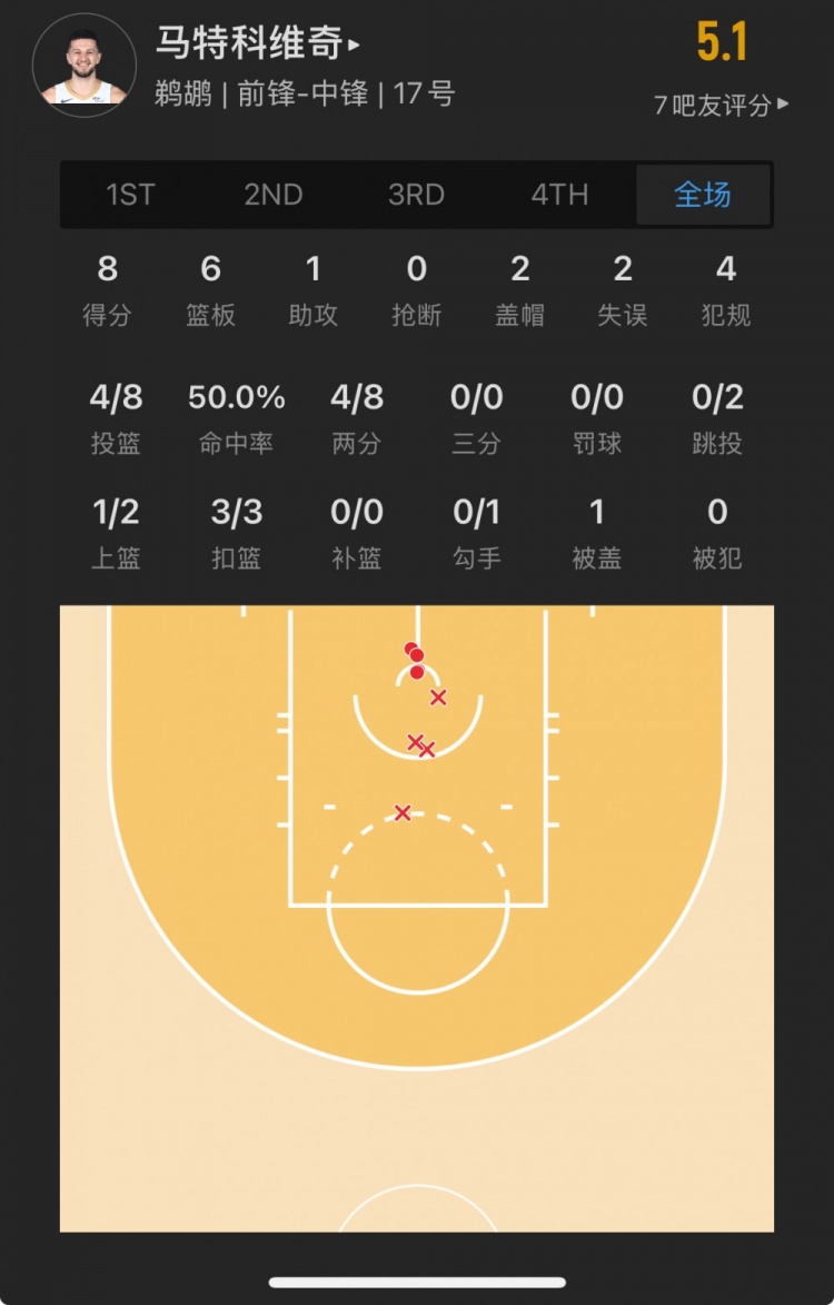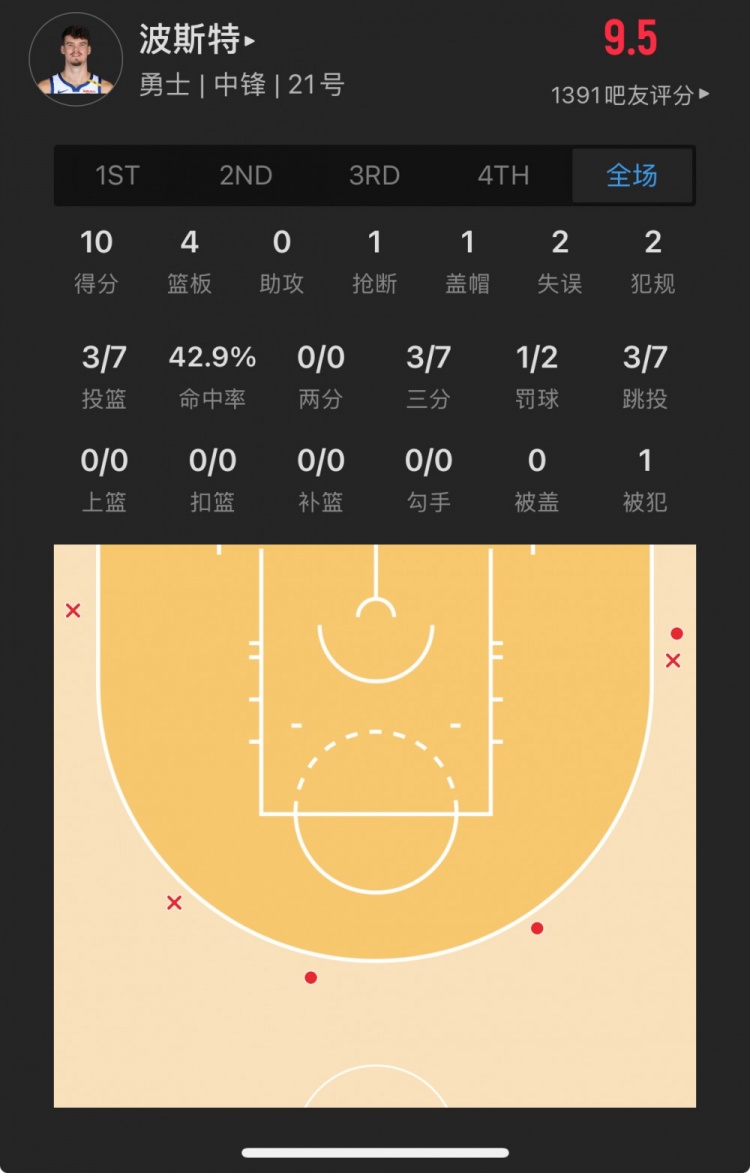 勇士52號(hào)秀 昆滕-波斯特 登場(chǎng)20.9分鐘
