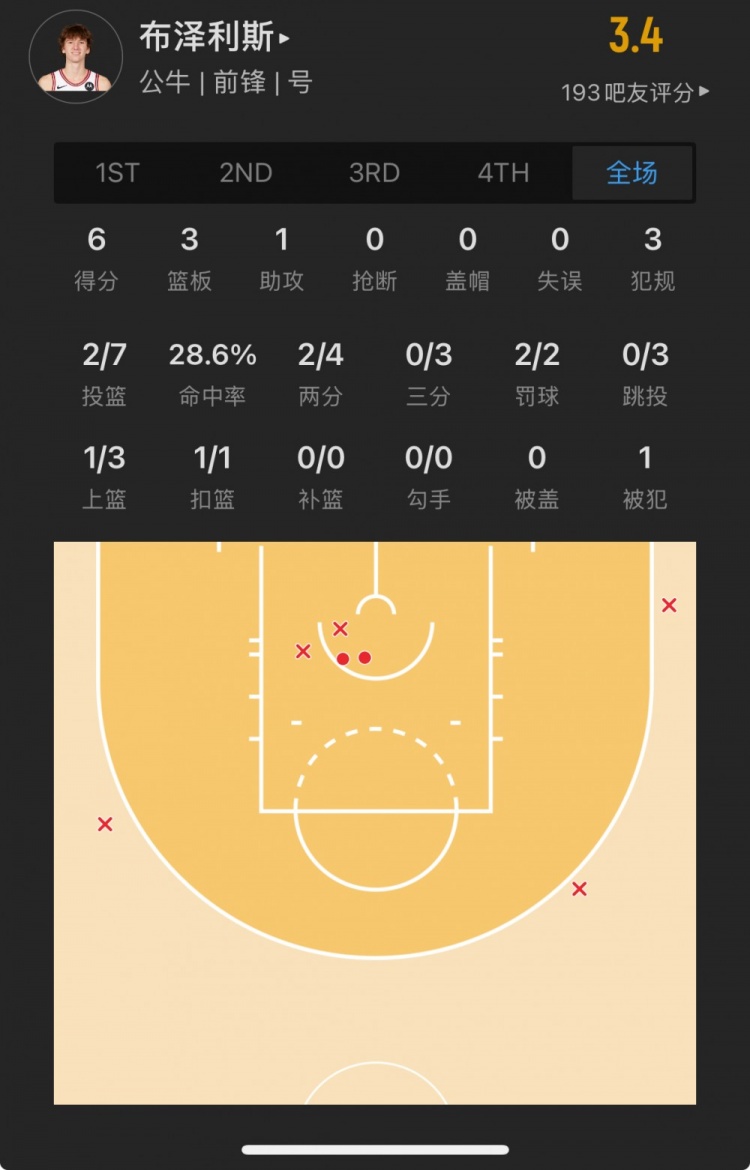 公牛11號(hào)秀 馬蒂斯-布澤利斯 登場(chǎng)14.6分鐘