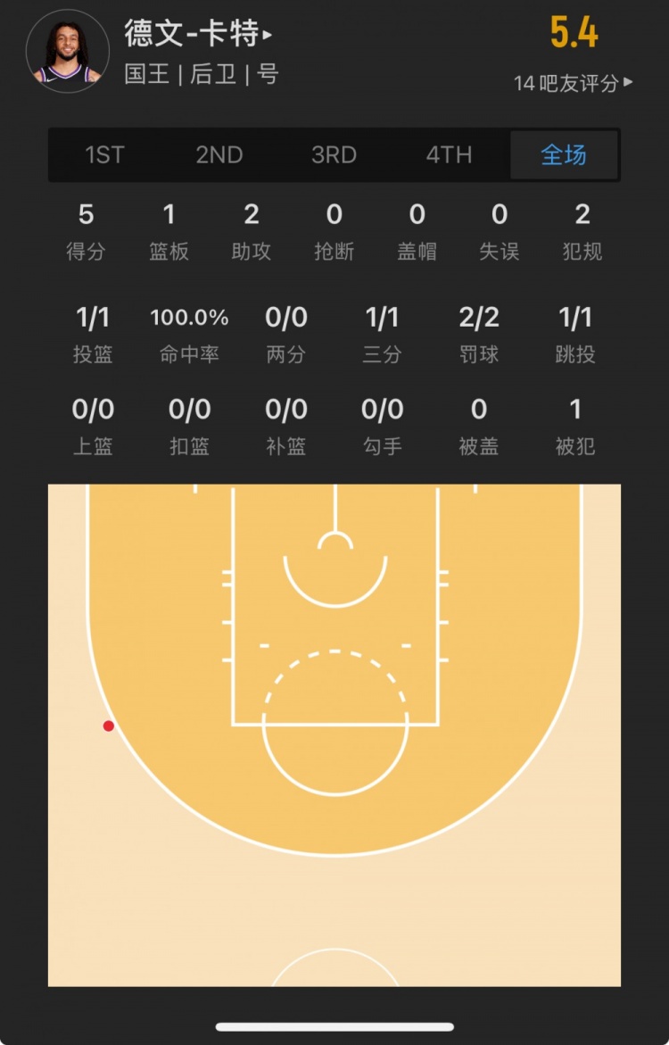 國(guó)王13號(hào)秀 德文-卡特 登場(chǎng)7.4分鐘