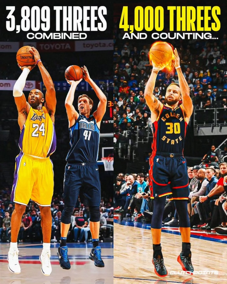 科比諾維茨基生涯合計投中3809記三分 合起來不敵庫里的4000記