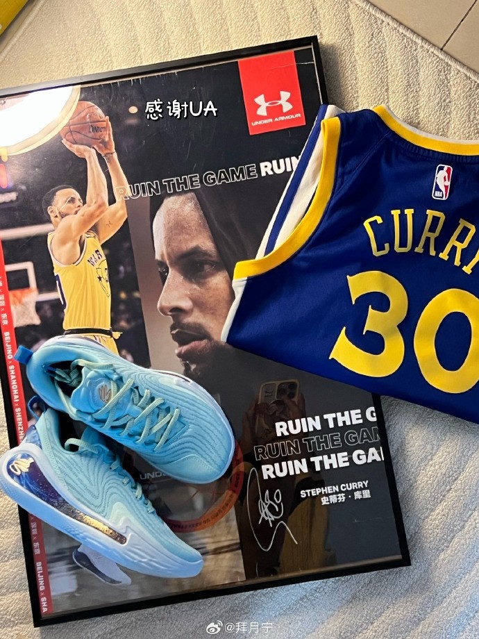 賽后,美女主播拜月寧曬出一組自己和庫里有關(guān)的照片,配文寫道:“庫里職業(yè)生涯的4000記三分球達(dá)成?