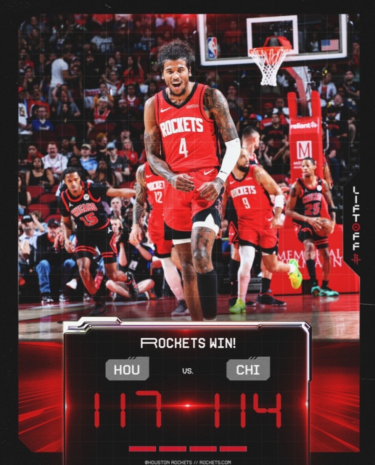 賽后,火箭官方發(fā)布贏球海報(bào),杰倫-格林登上封面。