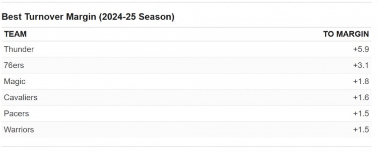 14、雷霆不僅在防守端擅長制造對手失誤,他們在進攻端的失誤控制也是聯(lián)盟最佳。這種雙重優(yōu)勢意味著雷霆每場比賽比對手少失誤5.9次,這將打破1987-88賽季掘金創(chuàng)造的5.1次紀錄。本賽季,只有一支球隊的失誤差能達到雷霆的三分之一。
