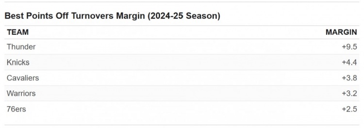 (圖為本賽季利用失誤產(chǎn)生的凈勝分Top5)
