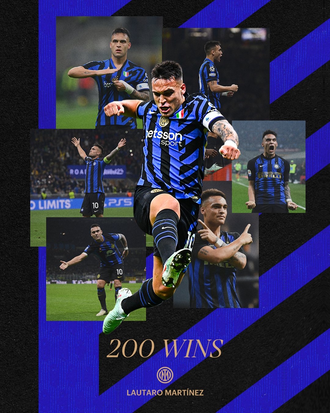 國米官方數(shù)據(jù)統(tǒng)計顯示,27歲的勞塔羅也達(dá)成了俱樂部200勝里程碑。國米官推也表示:“我們的旗幟人物已經(jīng)達(dá)成了藍(lán)黑生涯200勝?!?/p>