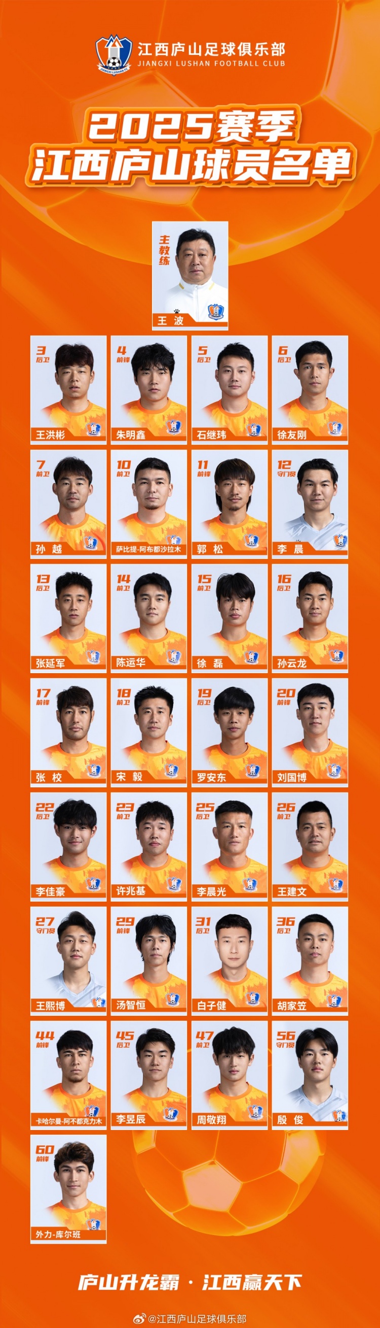 江西廬山足球俱樂(lè)部2025賽季球員大名單