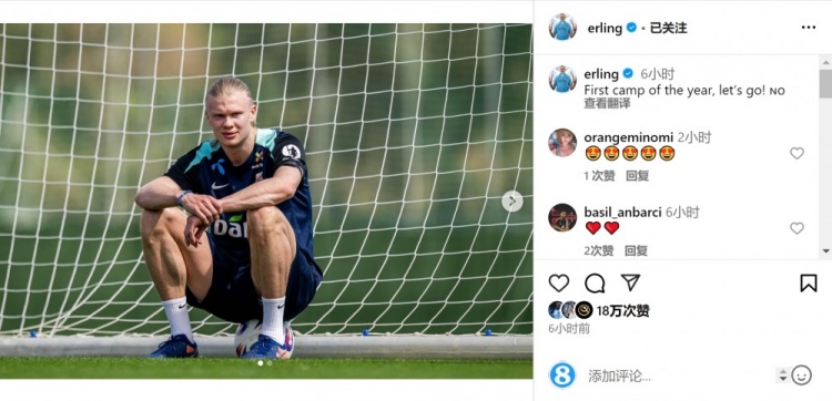 哈蘭德社媒曬坐球照片:今年首次國家隊集訓(xùn),加油!