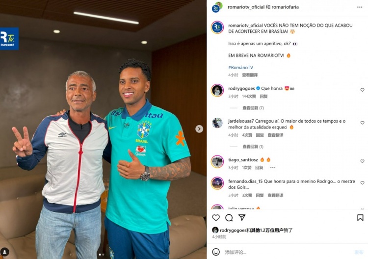 羅德里戈&拉菲尼亞&恩德里克做客電視節(jié)目,與羅馬里奧合影留念