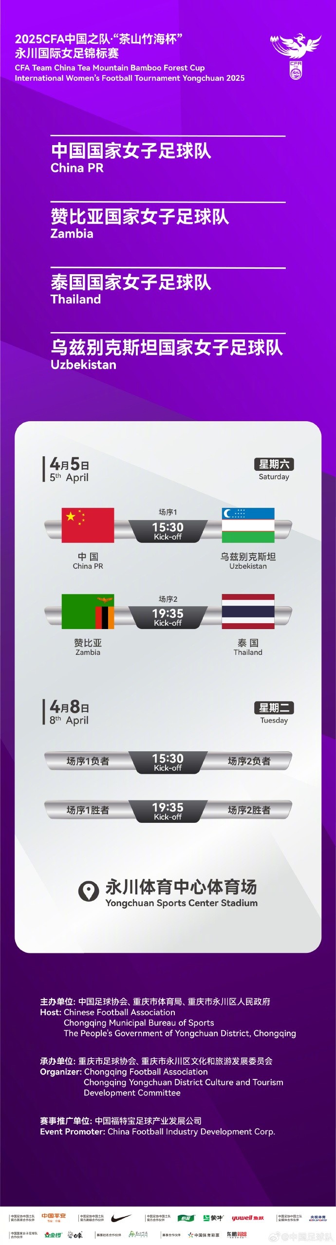 永川國(guó)際女足錦標(biāo)賽將于4月5日、8日在永川體育中心體育場(chǎng)進(jìn)行。