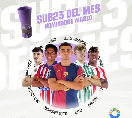 3月20日訊 西甲官方公布了3月最佳U23球員候選名單,分別為佩德里、尼科-威廉姆斯、朱利亞諾-西蒙尼、熱蘇斯-羅德里格斯以及迭戈-洛佩茲。