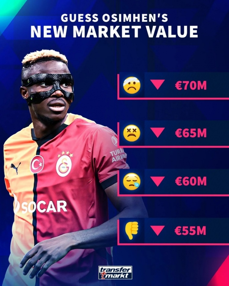 3月20日訊 德國轉(zhuǎn)會市場即將更新土超球員的身價(jià),官方社媒預(yù)熱奧斯梅恩的身價(jià)變動。